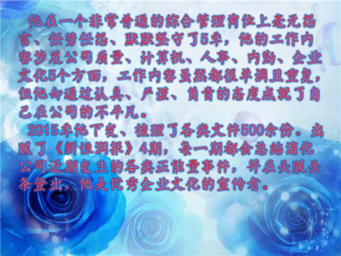 我們將持續(xù)依照關(guān)心人、尊重人、理解人、信任人的原則,打造恒潤(rùn)公司的企業(yè)文化。